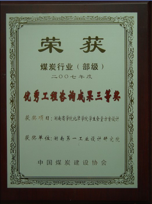湖南省優(yōu)秀設(shè)計表揚金獎(1984)